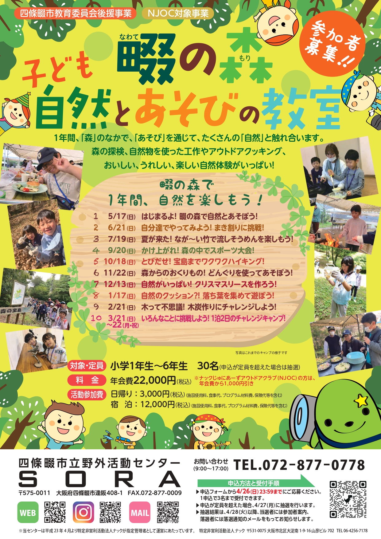 四條畷市の森で、1年間、自然体験や野外活動をいっしょに楽しもう!